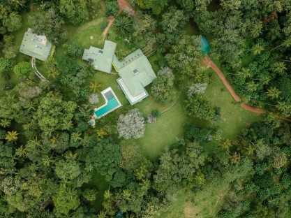 An eco-friendly private bungalow resting on a 4-acre property, nestled between the Dambulla Rock Temple and Dambulla Oya River. The villa is surrounded by lush greenery and over 400 hand planted trees, nurtured by its owners to create a nature-protected sanctuary.